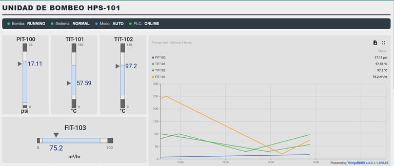 Dashboards personalizables en ThingsBoard con acceso remoto seguro desde cualquier dispositivo. Historial completo de variables y tendencias para análisis y auditorías.