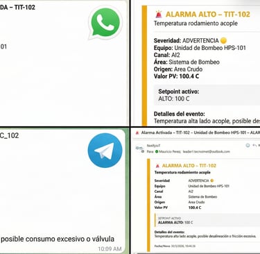 Del sensor a tu celular en segundos. Alarmas industriales inteligentes con trazabilidad completa.