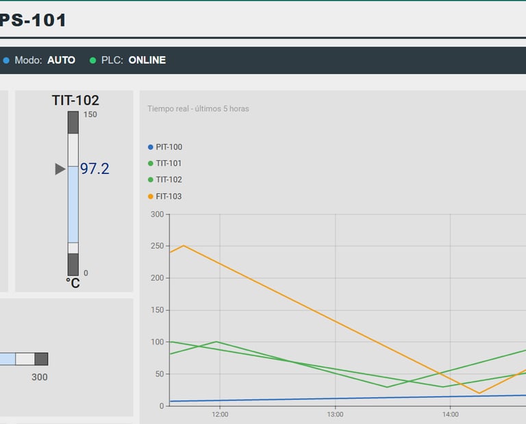 Dashboards personalizables en ThingsBoard con acceso remoto seguro desde cualquier dispositivo. Historial completo de variables y tendencias para análisis y auditorías.